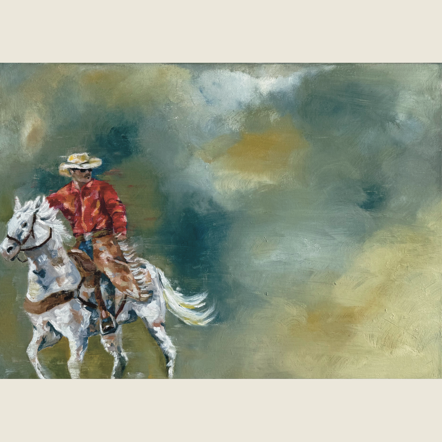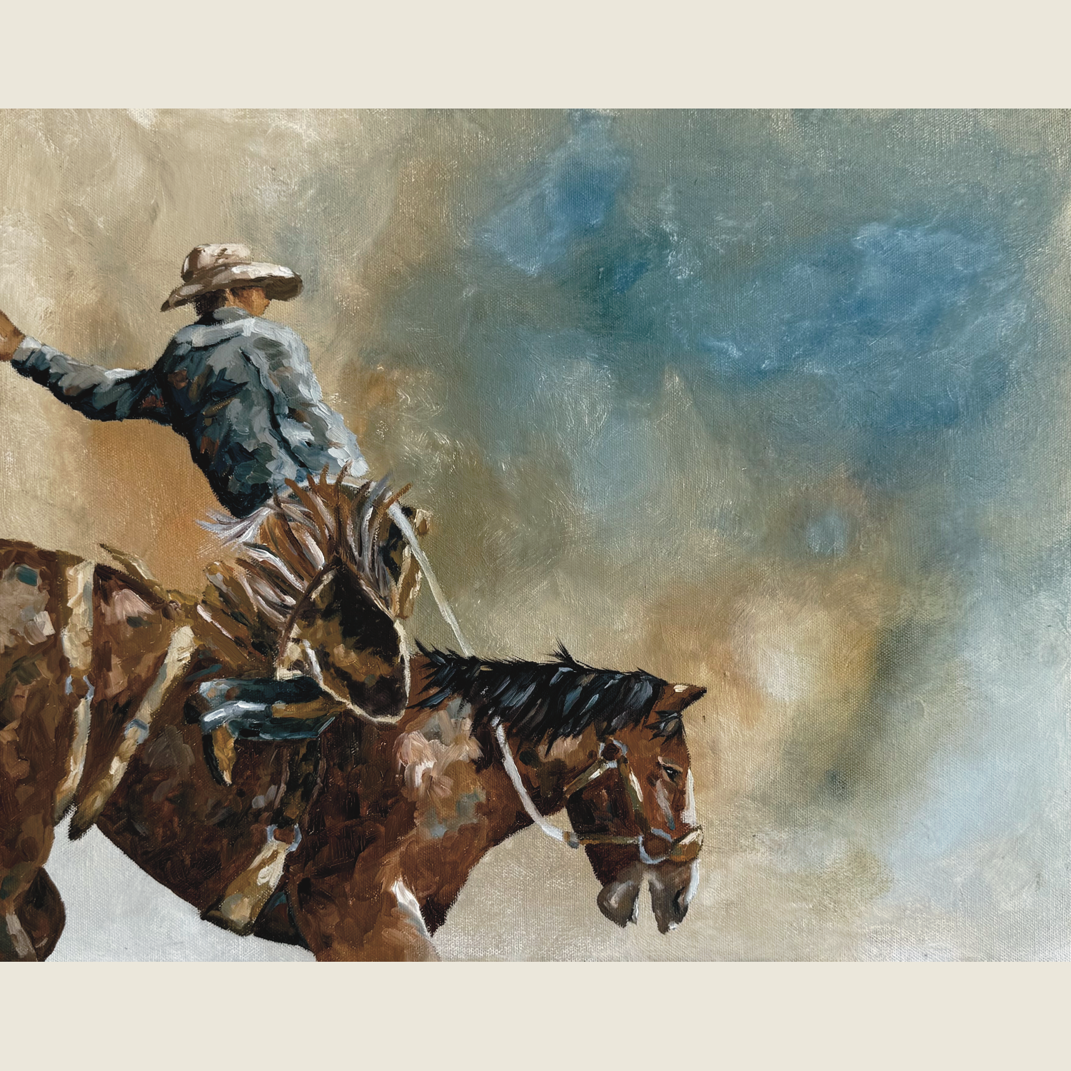 Cowboys on Leather and Canvas Pickup Man in Red - Original £1,000.00 Add to Cart Original Paintings Roping - Original £1,750.00 Add to Cart In the sky - original £1,250.00 Add to Cart